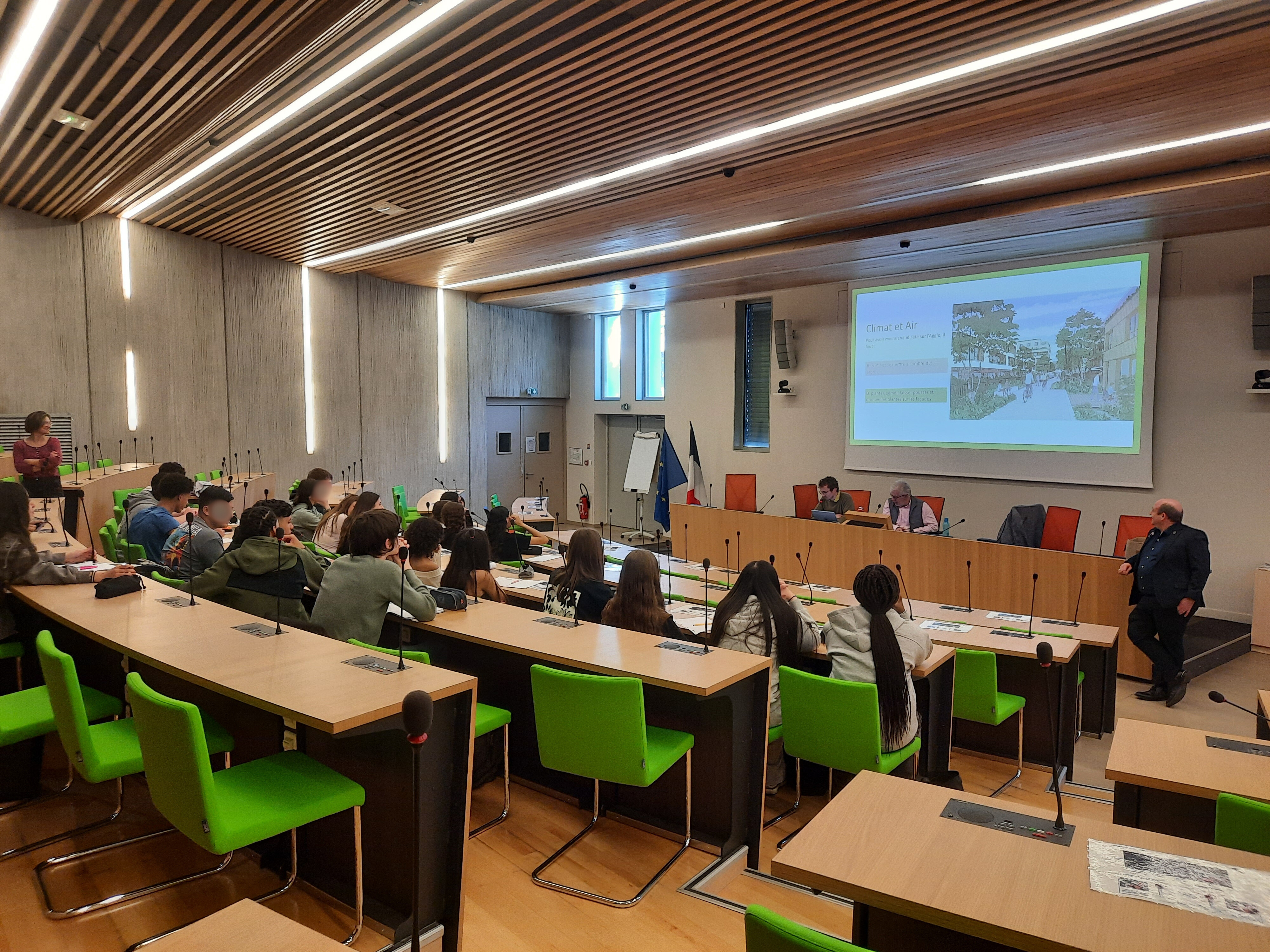 Les lycéens ont été accueillis dans la salle du Conseil Communautaire de l'hôtel d'agglomération. Durant cette après-midi, les services techniques leur ont présenté les différents volets de la politique environnementale territoriale : la gestion des déchets, la préservation des ressources en eau et les actions menées pour réduire l'impact écologique local.